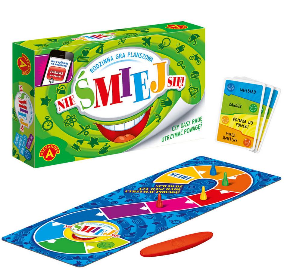 Nie Śmiej Się jest towarzyską grą planszową, w której co chwila wybuchają salwy śmiechu. Kłopot w tym, że aby zdobyć przewagę nad rywalami, trzeba jak najdłużej zachować powagę.