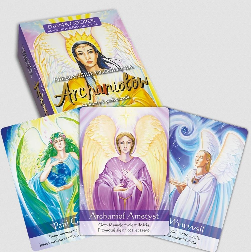 Diana Cooper, specjalistka od kontaktów z aniołami oraz przewodnikami duchowymi, stworzyła unikalną talię, która pomoże ci połączyć się z 44 najpotężniejszymi archaniołami. Archanioł Gabriel, Michał, Metatron, Rafael, Uriel, Zadkiel, Chamuel, Jeremiel czy Samael, tylko czekają, by ci pomóc. Wystarczy, że wyciągniesz jedną z anielskich kart, a zilustrowany na niej anioł pojawi się u twojego boku. Dotknie cię i zaoferuje swoją pomoc. Gdy przeczytasz uważnie przesłanie z karty i rozważysz jej wskazówki, anioł pozostanie z tobą na dłużej. Możesz również umieścić wybraną kartę przy swoim łóżku, wtedy anioł będzie pracować z twoim duchem nawet podczas snu.