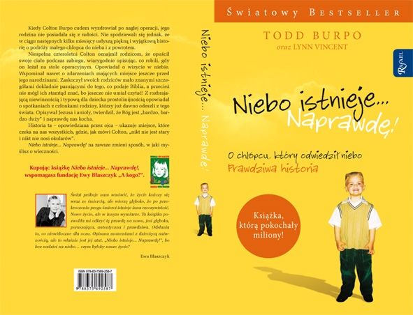 Kiedy Colton Burpo cudem wyzdrowiał po nagłej operacji wycięcia wyrostka robaczkowego, jego rodzina nie posiadała się z radości. Nie spodziewała się jednak, że w ciągu następnych kilku miesięcy usłyszy piękną i wyjątkową historię o podróży małego chłopca do nieba i z powrotem. Niespełna czteroletni Colton oznajmił rodzicom, że opuścił swoje ciało podczas zabiegu, wiarygodnie opisując, co jego rodzice robili, gdy on leżał na stole operacyjnym. Opowiadał o wizycie w niebie. Wspominał nawet o zdarzeniach mających miejsce jeszcze przed jego narodzinami. Zaskoczył swoich rodziców opisami i mało znanymi szczegółami o niebie, dokładnie pasującymi do tego, co podaje Biblia, a przecież nie mógł ich stamtąd znać, bo jeszcze nie umiał czytać. Z rozbrajającą niewinnością i typową dla dziecka prostolinijnością Colton opowiadał o spotkaniach z członkami rodziny, którzy już dawno odeszli z tego świata. Opisywał Jezusa i anioły, twierdził, że Bóg jest „bardzo, bardzo duży” i naprawdę nas kocha. Historia ta – opowiedziana przez ojca przywołującego proste słowa własnego syna – ukazuje miejsce, które czeka na nas wszystkich, gdzie, jak mówi Colton, „nikt nie jest stary i nikt nie nosi okularów”.