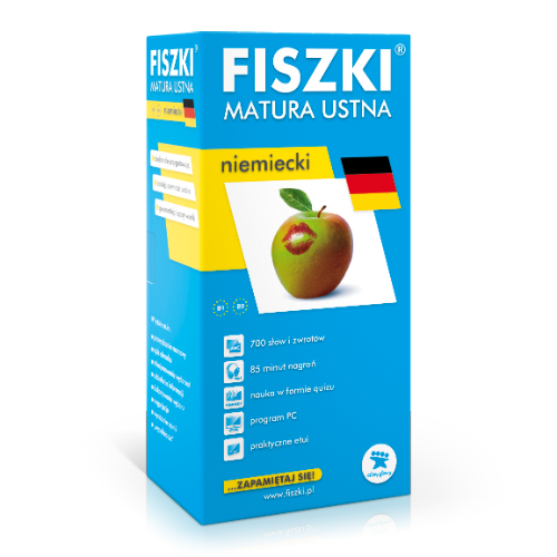 Tytuł skierowany jest zarówno do maturzystów zdających język niemiecki na poziomie podstawowym (B1), jak i zaawansowanym (B2).Zawiera blisko 700 słów i zwrotów, które pomagają odpowiedzieć na każde pytanie, a wypowiedzi nadają płynny i naturalny charakter. Zaskocz egzaminatora, zdaj maturę na 6!Hasła zaprezentowano na 300 trwałych kartonikach, które zaprojektowano ze szczególną dbałością o prostotę i przejrzystość.