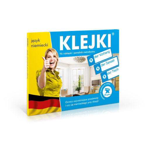 To prosty i sprawdzony sposób na naukę słówek.Dzięki KLEJKOM szybko i bez wysiłku opanujesz blisko 100 niemieckich nazw przedmiotów z Twojego otoczenia - salonu, sypialni, kuchni, pokoju dziecięcego, łazienki czy przedpokoju.Naklej naklejki na odpowiednie przedmiotyOd czasu do czasu zerknij na niePrzekonaj się, jak prosta może być nauka!