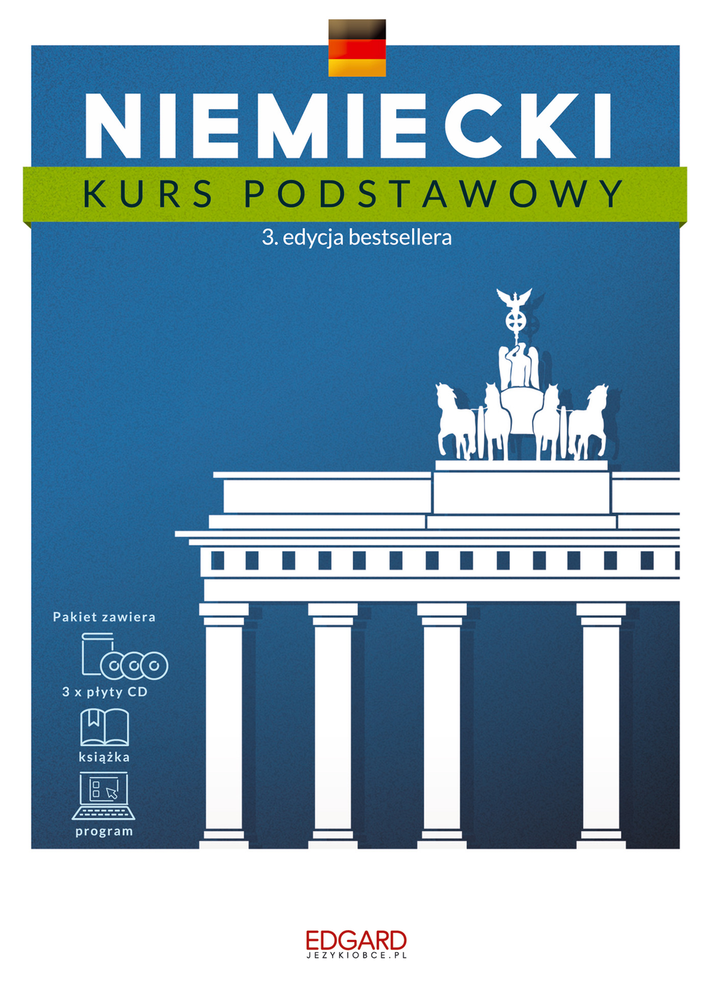 Zacznij mówić i czytać po niemiecku! W najnowszym wydaniu unikalnego kursu dla początkujących znajdziesz wszystko, czego potrzebujesz do samodzielnej i skutecznej nauki: obszerny podręcznik w nowoczesnej szacie graficznej, nagrania native speakerów z tłumaczeniami oraz wciągające ćwiczenia w programie komputerowym.Książka (208 str.):- 39 ciekawych lekcji - poznaj słownictwo i podstawy gramatyki- 1800 słów, wyrażeń i zdań przydatnych na co dzień - zrób zakupy, kup bilet, zapytaj o drogę- teksty, dialogi, ciekawostki oraz słowniczek niemiecko-polski- ćwiczenia utrwalające z kluczem odpowiedzi i rozdziały podsumowujące - ucz się aktywnie i trwale zapamiętujWysokiej jakości nagrania:- ponad 250 min nagrań native speakerów - poznaj niemiecką wymowę- nagrania z tłumaczeniami - powtarzaj za lektorem- słuchaj i ucz się w drodze do pracy, na siłowni, w samochodzieProgram komputerowy:- ćwiczenia interaktywne - utrwalaj i powtarzaj materiał- gry językowe - nawet nie zauważysz, jak zapamiętasz słówka- testy podsumowujące - dowiedz się, ile już umiesz- wygodne generowanie playlist nagrań mp3 - twórz własne playlisty i zapamiętuj szybciej