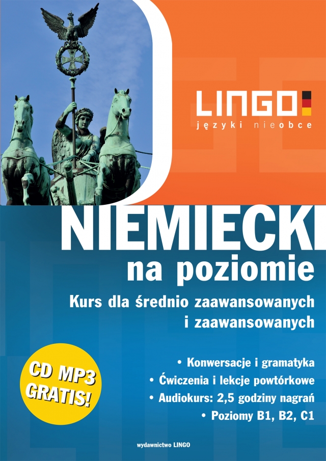 Z Lingo uczysz się na poziomie! Kompletny kurs dla wszystkich, którzy chcą utrwalić i udoskonalić znajomość języka niemieckiego.Potrafisz posługiwać się językiem niemieckim tylko w prostych sytuacjach i nie chcesz na tym poprzestać? Twoim celem jest udoskonalenie umiejętności, poszerzenie wiedzy, nabranie językowej pewności siebie i płynności? Kurs Lingo jest właśnie dla Ciebie!`Niemiecki na poziomie` jest kontynuacją popularnego kursu Lingo `Niemiecki raz a dobrze`. Po opanowaniu poziomów A1 i A2, przyszedł czas, by powiedzieć B, a nawet C. Z nami wkroczysz w `Kompetente Sprachverwendung` czyli `poziom biegłości` języka niemieckiego.
