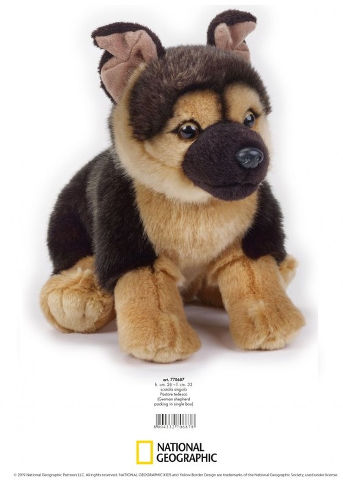 Owczarek niemiecki na licencji National Geographic w atrakcyjnym opakowaniu, które umożliwia przyciągającą wzrok ekspozycję. Dodatkowo produkt posiada etykietę, która zawiera ciekawostki na temat zwierzęcia. Produkty z tej serii są bardzo realistyczne, dzięki czemu dziecko podczas zabawy może sobie wyobrażać prawdziwe zwierzęta! Same pluszaki są wykonane z materiałów wysokiej jakości co sprawia, że są bardzo miłe w dotyku.