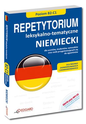 NIEMIECKI Repetytorium leksykalno-tematyczne to: - nauka 2700 słów, wyrażeń i kolokacji, - 38 zagadnień uporządkowanych w 13 rozdziałach, - kilkadziesiąt interesujących tekstów pokazujących użycie słów w praktyce, - blisko 200 różnorodnych ćwiczeń z odpowiedziami, - współczesne, aktualne słownictwo i potoczne zwroty, - CD MP3 z najciekawszymi nagraniami - GRATIS! Nowoczesne Repetytorium leksykalno-tematyczne umożliwia poznanie lub przypomnienie sobie 2700 słów, wyrażeń i kolokacji na poziomie średnio zaawansowanym i zaawansowanym (B2-C1 wg klasyfikacji Rady Europy). Zestaw (książka + płyta CD MP3) adresowany jest do uczniów, samouków oraz wszystkich, którzy chcą poszerzyć zasób niemieckiego słownictwa oraz przypomnieć sobie i skutecznie utrwalić znajomość zwrotów przydatnych w pracy i w życiu codziennym. Opracowany został również z myślą o uczniach szkół średnich, studentach i osobach przygotowujących się do egzaminów na poziomach B2-C1. Repetytorium może być pomocne nauczycielom, można je wykorzystać w trakcie pracy z uczniami podczas lekcji lub korepetycji. Podręcznik obejmuje 38 zagadnień usystematyzowanych w 13 rozdziałach tematycznych. W każdym podrozdziale znajdują się: wprowadzenie do tematu, tekst z zadaniami, słownictwo występujące w tekście oraz słownictwo dodatkowe wraz z tłumaczeniem, a także różnorodne ćwiczenia utrwalające. 13 rozdziałów oraz ponad 60 tekstów obejmują najważniejsze zagadnienia niezbędne na co dzień i w trakcie egzaminów. Blisko 200 różnorodnych ćwiczeń (m.in. pytania typu prawda/fałsz, łączenie w pary, uzupełnianie luk w tekście, kategoryzowanie słówek) sprawi, że szybko opanujesz słownictwo, a także sprawdzisz swoją wiedzę. Na końcu podręcznika znajduje się pełny klucz odpowiedzi. Płyta CD MP3 jest doskonałym uzupełnieniem nauki z podręcznikiem. Zawiera ponad 130 min wysokiej jakości nagrań w wykonaniu profesjonalnych lektorów. Jest szczególnie pomocna w nauce prawidłowej wymowy oraz w kształceniu umiejętności rozumienia ze słuchu.