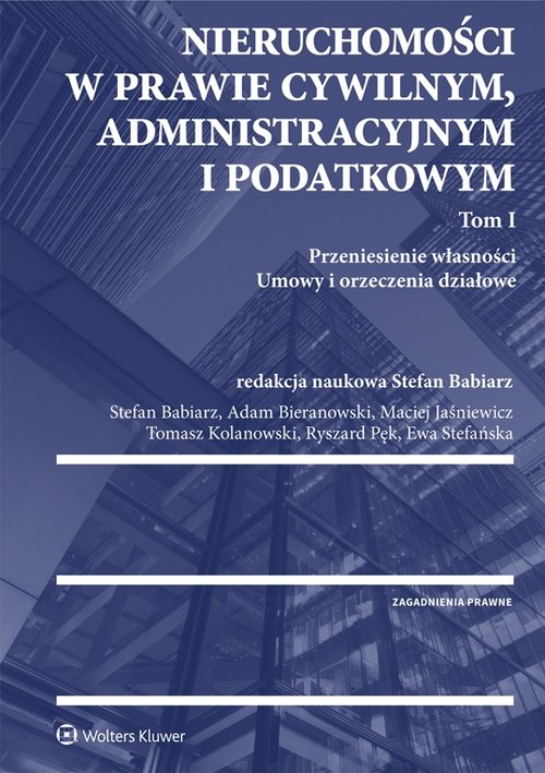 W publikacji w sposób szczegółowy i kompleksowy zaprezentowano problematykę szeroko pojętego obrotu nieruchomościami i korzystania z nich zarówno w stosunkach gospodarczych, jak i rodzinnych. Poszczególne zagadnienia omówiono z punktu widzenia prawa cywilnego, administracyjnego i podatkowego. W książce zawarto ponadto szczegółową analizę, na gruncie prawa prywatnego i daninowego, wszystkich instytucji z zakresu prawa rzeczowego i obligacyjnego dotyczących nieruchomości. Ukazane instytucje prawne zostały obszernie zilustrowane aktualnymi orzeczeniami Trybunału Konstytucyjnego, Sądu Najwyższego, Naczelnego Sądu Administracyjnego i wojewódzkich sądów administracyjnych, które pozwalają na poznanie praktycznego aspektu ich funkcjonowania. W tomie pierwszym przedstawiono zagadnienia dotyczące m.in.: - nieruchomości w umowach obligacyjnych regulujących przeniesienie własności, - odpowiedzialności podatkowej z tytułu przeniesienia własności nieruchomości, - ważności (skuteczności) umowy przenoszącej własność nieruchomości w kontekście obowiązku podatkowego w podatku od towarów i usług, - zwolnienia od podatku od towarów i usług dostawy terenów niezabudowanych innych niż tereny budowlane, - wykorzystywania nieruchomości do prowadzenia działalności gospodarczej oraz do celów prywatnych, - opodatkowania nieruchomości nabytych w spadku (dziedziczenie, polecenie testamentowe), - opodatkowania przeniesienia własności nieruchomości, - budynków i budowli wybudowanych na cudzym gruncie, jako odrębny środek trwały, - konsekwencji podatkowych umów i orzeczeń działowych.