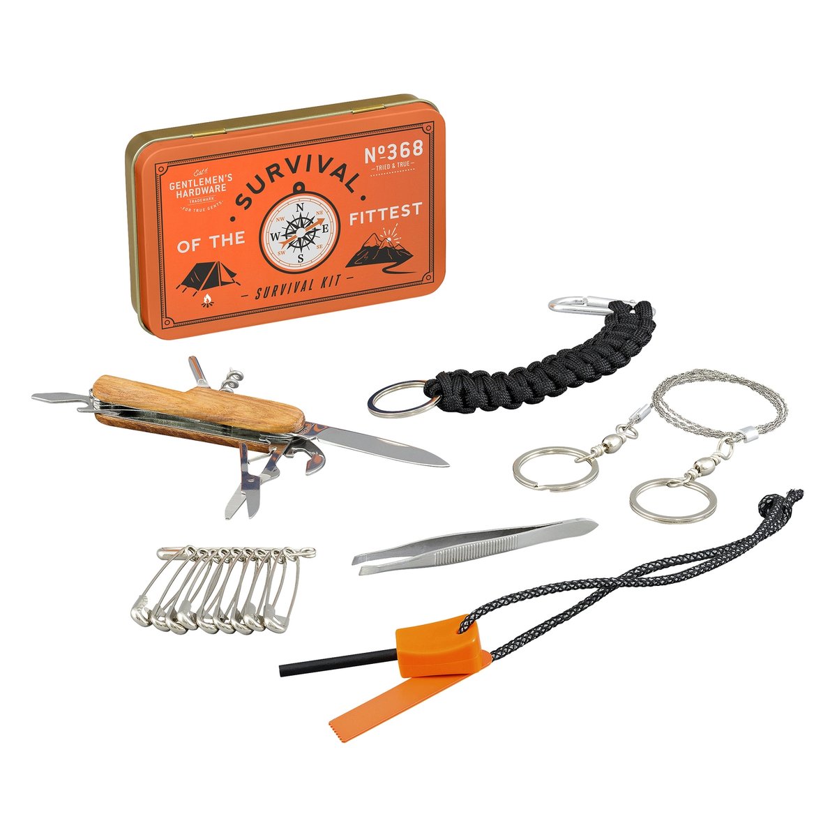 Przygotuj się na kolejną przygodę z tym zestawem outdoorowym w puszce. Zawiera: 10 agrafek, rozpałkę, scyzoryk 6 w 1, pęsetę, plecioną linę o długości 210 cm i piłę drucianą. Schludnie zapakowany