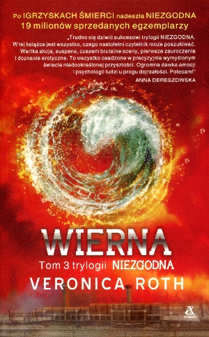 Trudno się dziwić sukcesowi trylogii NIEZGODNA. W tej książce jest wszystko, czego nastoletni czytelnik może poszukiwać. Wartka akcja, suspens, czasem brutalne sceny, pierwsze zauroczenia i doznania erotyczne. To wszystko osadzone w precyzyjnie wymyślonym świecie niedookreślonej przyszłości. Ogromna dawka emocji i psychologii ludzi u progu dojrzałości. Polecam!ANNA DERESZOWSKATrylogia Niezgodna w 2012, 2013 i 2014 roku zdetronizowała Igrzyska śmierciNajlepiej sprzedająca się książka 2013 roku w Amazonie po Inferno (19 000 000 sprzedanych egzemplarzy).Trylogia Niezgodna: NIEZGODNA ZBUNTOWANA WIERNANajwiększy przebój literatury młodzieżowej ostatnich lat.Na listach bestsellerów ,,New York Timesa""1. miejsce - ponad 4 miesiące2. i 3. miejsce - ponad 8 miesięcyw Top 10 - prawie 3 lataJeden wybór może cię zmienić.Jeden wybór może cię zniszczyć.Jeden wybór pokaże, kim jesteś...Altruizm (bezinteresowność), Nieustraszoność (odwaga), Erudycja (inteligencja), Prawość (uczciwość), Serdeczność (życzliwość) - to pięć frakcji, na które podzielone było społeczeństwo zbudowane na ruinach Chicago. Każdy szesnastolatek przechodził test predyspozycji, a potem w krwawej ceremonii musiał wybrać frakcję. Ten, kto nie pasował do żadnej, zostawał uznany za bezfrakcyjnego i wykluczony.Ten, kto łączył cechy charakteru kilku frakcji, był NIEZGODNY - i musiał być wyeliminowany...Ale to już przeszłość. Społeczeństwo frakcyjne, w które Tris tak wierzyła, legło w gruzach - podzielone walką o władzę, naznaczone śmiercią i zdradą. Jednego tyrana zastąpił drugi. Miastem rządzą niepodzielnie bezfrakcyjni. Tris wie, że czas uciekać. Lecz jaki świat rozciąga się poza znanymi jej granicami? Może za murem będzie mogła zacząć z Tobiasem wszystko od nowa, bez trudnych kłamstw, podwójnej lojalności, bolesnych wspomnień? A może poza miastem nie ma żadnego świata...Lecz nowa rzeczywistość jest jeszcze bardziej przerażająca. Nowe szokujące odkrycia zmieniają serca tych, których kocha. Raz jeszcze Tris musi dokonać niemożliwych wyborów - odwagi, wierności, poświęcenia i miłości. Bo tylko ona może przeszkodzić kolejnemu rozlewowi krwi...