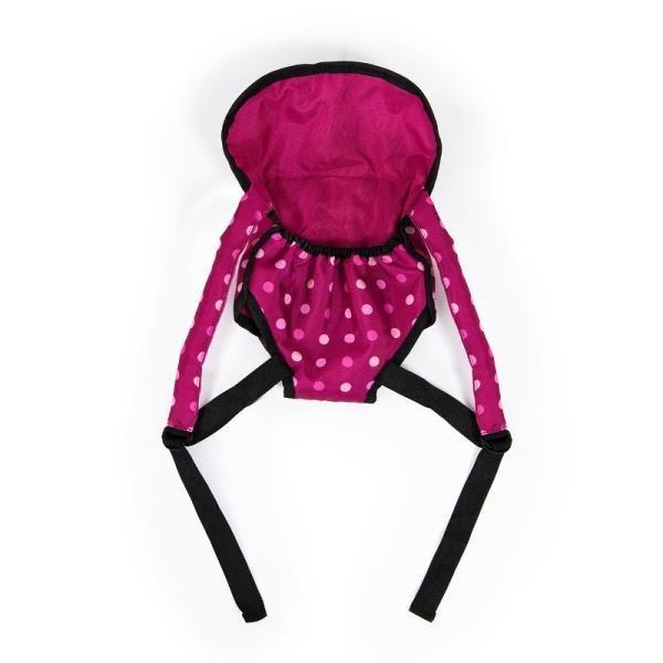 Czy to w podróży, czy w domu, ten produkt do noszenia lalek jest odpowiedni wszędzie. Nosidełko wykonane jest z wysokiej jakości materiałów w żywym bordowym kolorze we wzór różowych kropek. Zapinane paski nosidełka można umieścić na ramionach mamy lalki, dzięki czemu lalka może wygodnie i bezpiecznie siedzieć. Produkt jest odpowiedni dla lalek do 46 cm. Zapakowany w woreczek foliowy z zawieszką.