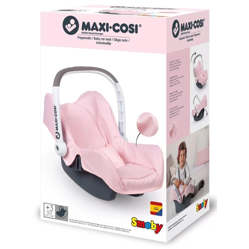 Fotelik z uchwytem w oryginalnym wzornictwie Maxi-Cosi. Ze schowkiem w oparciu siedzenia. Regulowana rączka. Dla lalek do 42 cm (brak w zestawie).