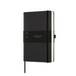 192 strony, papier 80g, 19x25 cm, kolor papieru kość słoniowa, numerowane strony, zakładka, gumka zamykająca, uchwyt na długopis