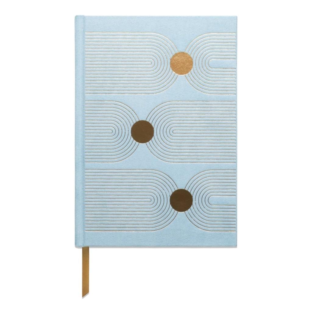 Ten uroczy dziennik z delikatną w dotyku zamszową okładką i złotym geometrycznym wzorem zapewnia idealną równowagę formy i funkcji. Strony są zadrukowane w linie z nagłówkami dni i miesięcy. Doskonale nadają się do pisania, robienia notatek, prowadzenia dzienników i nie tylko.