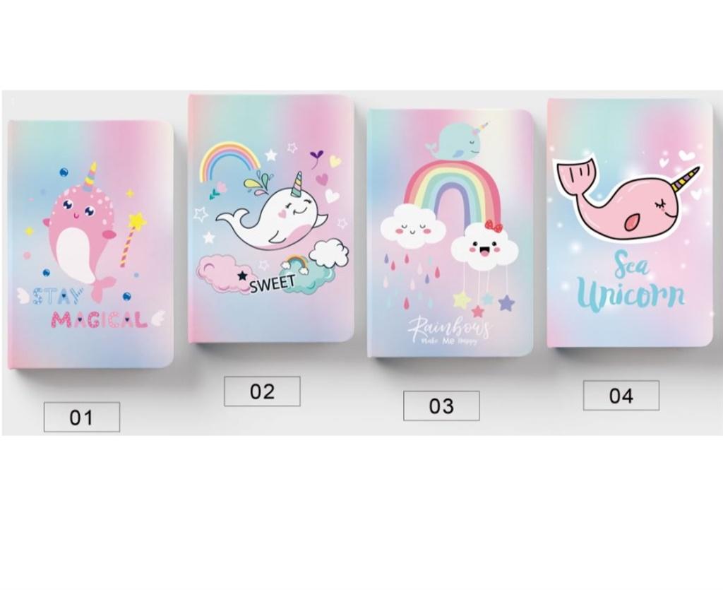 Notatnik 96 kartkowy z gumką w twardej okładce. Format A6. Wymiar 14.5x10.5 cm.