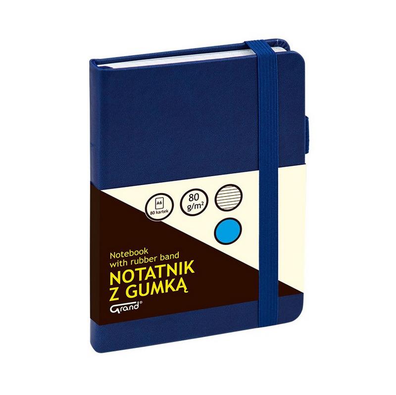 Opakowanie Notatnik A6/80K linia z gumką granatowy GRAND