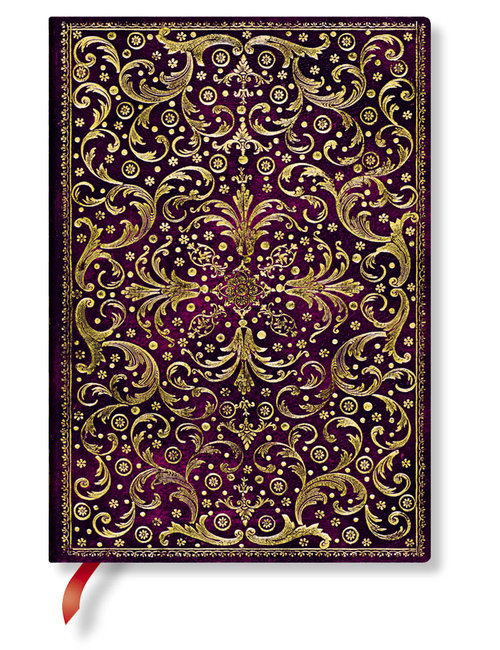 Notatnik Aurelia Midi w linię niezwykłej marki Paperblanks. Pięknie zdobiona, wytłaczana okładka o niesamowitej fakturze. Koperta wewnątrz tylnej okładki na luźne, drobne notatki i paragony. Satynowa wstążka jako zakładka. Papier ekologiczny. Notatnik szyty. Ilość stron 240. Wymiary: 130x180 mm. Zamknięcie na gumkę.