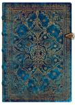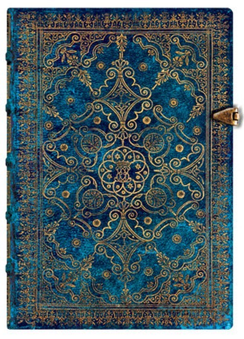 Notatniki Azure z serii Equinoxe marki Paperblanks. Idealne dla poważnych osób. Pięknie zdobiona okładka o przyjemnej, zmysłowej fakturze zaspokoi najbardziej wygórowane zmysły estetyczne. Kartki wykonane są z wysokiej jakości papieru bezkwasowego w kolorze ecri. Wewnątrz znajduje się atłasowa czerwona wstążka, dzięki której z pewnością otworzymy notatnik na właściwej stronie oraz koperta na wizytówki i paragony. Wszystkie kartki są zszywane.