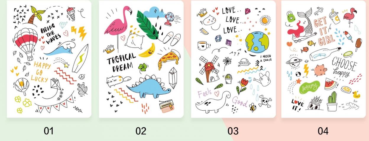 Notatnik 32 kartkowy. Tłoczona okładka - zeszytowa. BL 158 - B5. Wymiar 25.1*18 cm. Mix wzorów, towar wysyłany losowo.