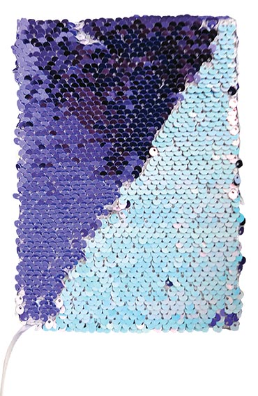 Notatnik ma atrakcyjny design w stylu syrenki, z dwustronnymi, mieniącymi się cekinami w kolorze jasno różowym, od spodu fioletowymi. Posiada zakładkę w formie wstążeczki. Notatnik A5, 80 kartek, w linie.