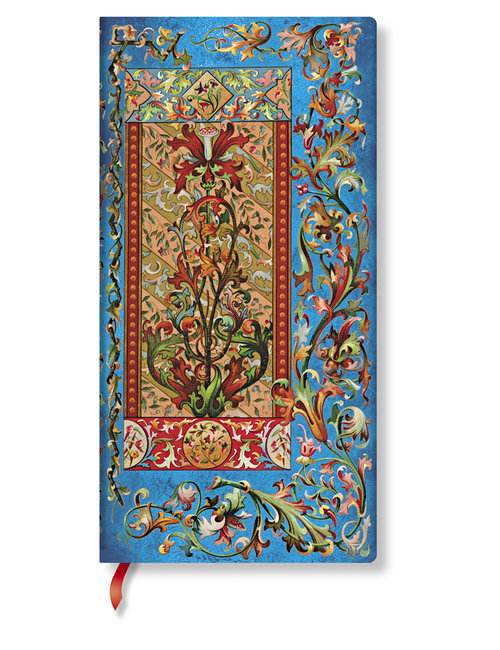 Notatnik Delphine Slim w linię niezwykłej marki Paperblanks. Pięknie zdobiona, wytłaczana okładka o niesamowitej fakturze. Koperta wewnątrz tylnej okładki na luźne, drobne notatki i paragony. Satynowa wstążka jako zakładka. Papier ekologiczny. Notatnik szyty. Ilość stron 176. Wymiary: 90x180 mm. Zamknięcie na gumkę.