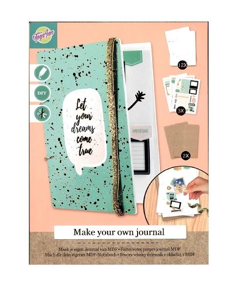 Ten dziennik z okładką z płyty MDF daje duże pole do wykazania twórczych umiejętności. Możesz pomalować przód i tył na biało i okleić je dołączonymi papierowymi elementami. Albo pomaluj zewnętrzną stronę według własnych upodobań. Połącz białe arkusze z zewnętrzną płytą MDF poprzez przełożenie metalowych kółek przez dziurki i użyj brokatowej tasiemki, żeby zamknąć album. Wiek 6+