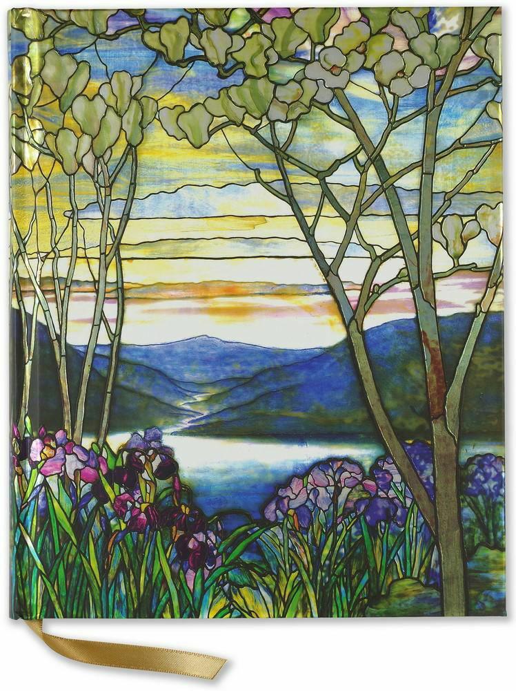 Notatnik Duży Tiffany Window marki Peter Pauper Press. Posiada oryginalną okładkę z wytłaczanymi wzorami i tylną kopertą na drobne notatki. Posiada wstążkę jako zakładkę. Notatnik zszywany. 192 stron w linię.