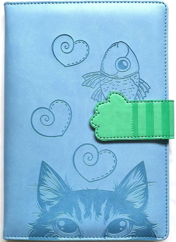 Notatnik dziecięcy A5 Kot 64 kartki gładki TW. Posiada zamknięcie na magnes w kształcie łapki kota. Okładka wytłaczana. Wyprodukowano na Ukrainie.