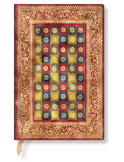 Notatnik Fiamma Mini w linię niezwykłej marki Paperblanks. Pięknie zdobiona, wytłaczana okładka o niesamowitej fakturze. Koperta wewnątrz tylnej okładki na luźne, drobne notatki i paragony. Satynowa wstążka jako zakładka. Papier ekologiczny. Notatnik szyty. Ilość stron 176. Wymiary: 95x140 mm. Zamknięcie na gumkę.