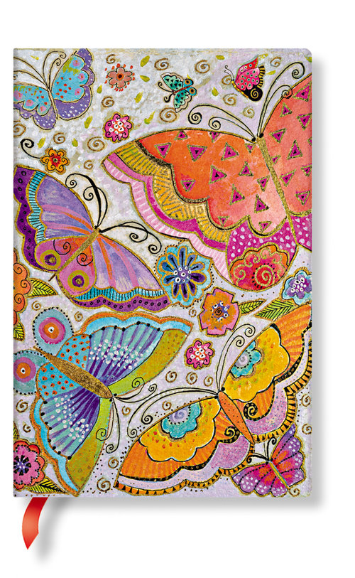 Notatnik Flexis Flutterbyes Mini Lined niezwykłej marki Paperblanks. Pięknie zdobiona wytłaczana okładka o niesamowitej fakturze. Wewnątrz na tylnej okładce koperta na drobne notatki. Satynowa wstążka jako zakładka. Papier ekologiczny. Notatnik szyty.