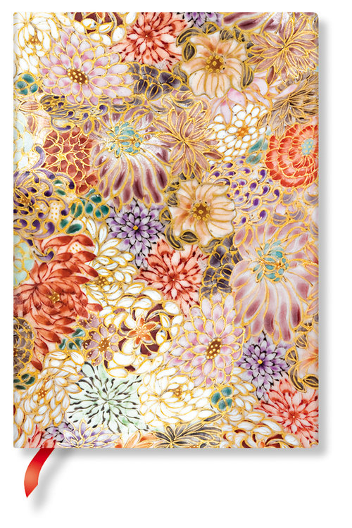Notatnik Flexis Kikka Midi Unlined niezwykłej marki Paperblanks. Pięknie zdobiona wytłaczana okładka o niesamowitej fakturze. Wewnątrz na tylnej okładce koperta na drobne notatki. Satynowa wstążka jako zakładka. Papier ekologiczny. Notatnik szyty.