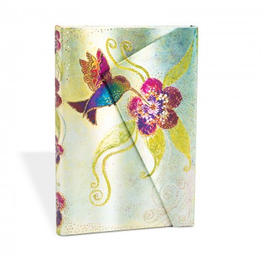 Notatnik Laurel Burch Whimsical Creations Hummingbird Mid Lined niezwykłej marki Paperblanks. Pięknie zdobiona wytłaczana okładka o niesamowitej fakturze. Wewnątrz na tylnej okładce koperta na drobne notatki. Satynowa wstążka jako zakładka. Papier ekologiczny. Notatnik szyty.