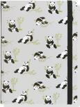 Notatnik w sztywnej, wytłaczanej okładce, zamykany na gumkę, z tyłu koperta. 160 stron w linię.