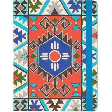 Notatnik Midi Pueblo marki Peter Pauper Press. Posiada oryginalną okładkę z wytłaczanymi wzorami i tylną kopertą na drobne notatki. Zamykany jest na gumkę.