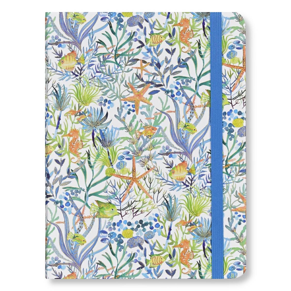 Średni notatnik firmy Peter Pauper Press Sen Oceanu (Ocean Dream). Każdy notes tej marki jest wyjątkowym dziełem sztuki. Bogactwo wzorów i kolorów pozwala wybrać ten idealny. Notes idealnie nadaje się na prezent. Okładka przedstawia bogactwo podwodnego świata - rozgwiazdy, koniki morskie, tropikalne ryby i morską roślinność.