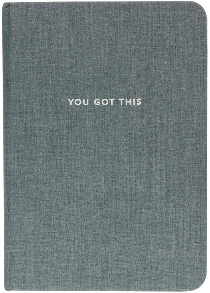 Notes marki Peter Pauper Press, w niewielkim poręcznym wydaniu. Oprawa twarda, wytłaczana okładka, zamykany na gumkę, z tyłu koperta na pojedyncze notatki. 160 stron w linie, bezkwasowy papier. Wymiary 127 x 178 mm. Motto na okładce "You Got This" wybite srebrną folią.