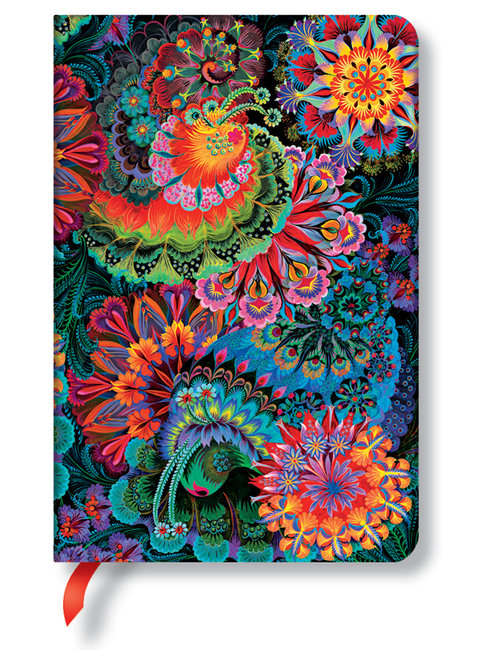 Notatnik Moonlight Mini w linię niezwykłej marki Paperblanks. Pięknie zdobiona, wytłaczana okładka o niesamowitej fakturze. Koperta wewnątrz tylnej okładki na luźne, drobne notatki i paragony. Satynowa wstążka jako zakładka. Papier ekologiczny. Notatnik szyty. Ilość stron 176. Wymiary: 95x140 mm. Zamknięcie na gumkę.