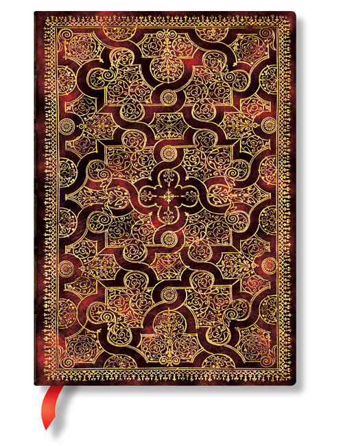 Notatnik Mystique Midi w linię niezwykłej marki Paperblanks. Pięknie zdobiona, wytłaczana okładka o niesamowitej fakturze. Koperta wewnątrz tylnej okładki na luźne, drobne notatki i paragony. Satynowa wstążka jako zakładka. Papier ekologiczny. Notatnik szyty. Zamykany na gumkę. Ilość stron 240. Wymiary: 180x130 mm.