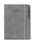Ekskluzywny notes, posiada metalizowaną okładkę, która dzięki zastosowaniu nowoczesnych materiałów i technik zdobienia jest olśniewająco efektowna. Ekskluzywną całość podkreśla wykończenie w jednym, dopasowanym do okładki, kolorze tasiemki, kapitałki oraz wyklejki z kieszonką na tylnej okładce. Notatnik wydrukowany został na papierze kremowym i zawiera strony na notatki oraz skorowidz teleadresowy. Zamykany na magnetyczną klapkę.