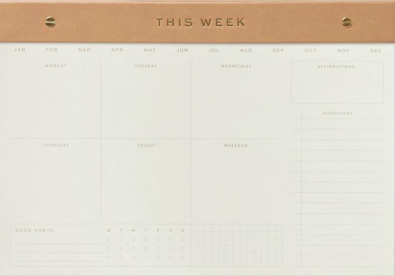 Umieść na środku biurka i używaj go do śledzenia najważniejszych priorytetów, a także do zapisywania codziennych afirmacji i intencji.