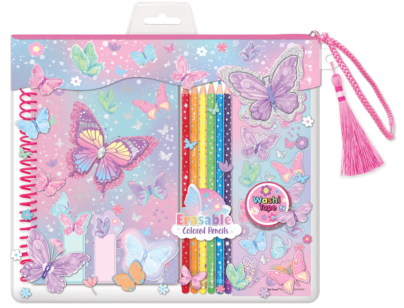 Opakowanie Notatnik na spirali w saszetce z kredkami Motylki