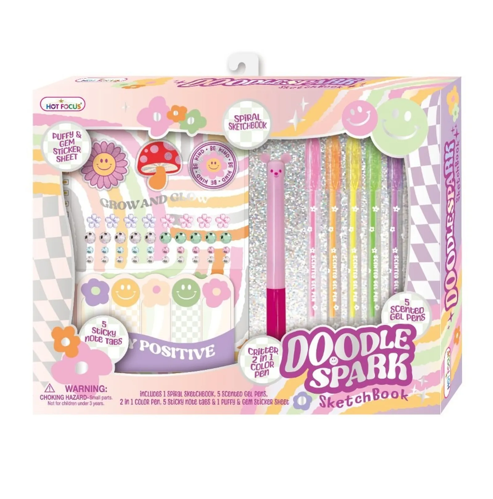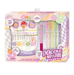 Zestaw zawiera: - kołozeszyt z czystymi kartkami - 5 długopisów żelowych - długopis tradycyjny w 2 kolorach - 3 miękkie naklejki - kryształki samoprzylepne - 5 wzorów karteczek samoprzylepnych - długopis z dwoma końcówkami - jedna to tradycyjny długopis do pisania, a druga to 'niewidzialny tusz'. Zapiski tym tuszem będą widoczne po podświetleniu ich specjalną lampką UV, która znajduje się w zatyczce długopisu - lampka LED na klips - arkusz naklejek Zestaw zapakowany w ozdobne opakowanie prezentowe. Wiek: 5+