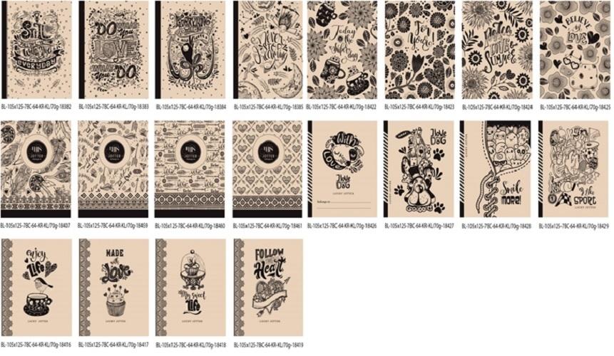Notatnik ozdobny 105x125 64 stron kratka TW karton, mix wzorów, wzór wysyłany losowo.
