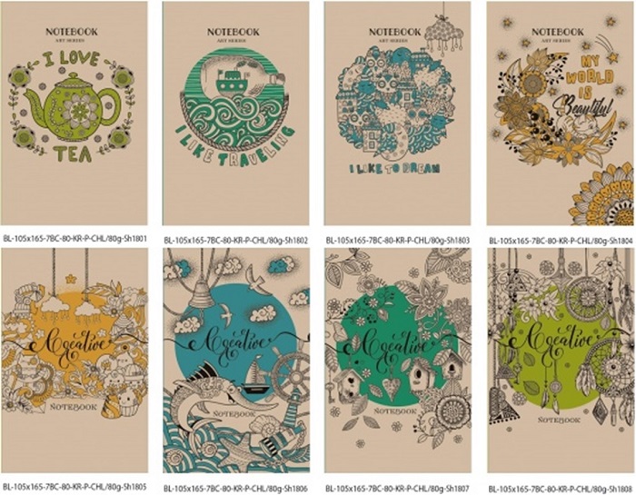 Notatnik ozdobny 105x165 80 stron gładki TW karton, mix wzorów, wzór wysyłany losowo.