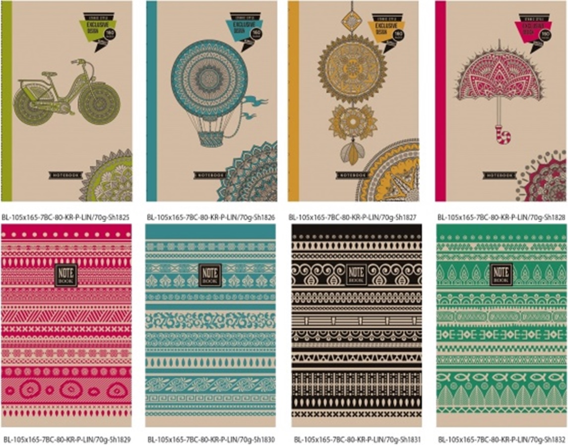 Notatnik ozdobny 105x165 80 stron linia TW karton mix wzorów. Dostępne różne wzory - wybór losowy.
