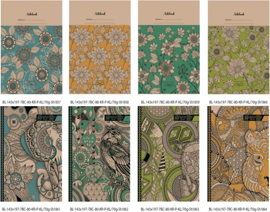 Notatnik ozdobny 143x197 80 stron kratka TW karton, mix wzorów, wzór wysyłany losowo.