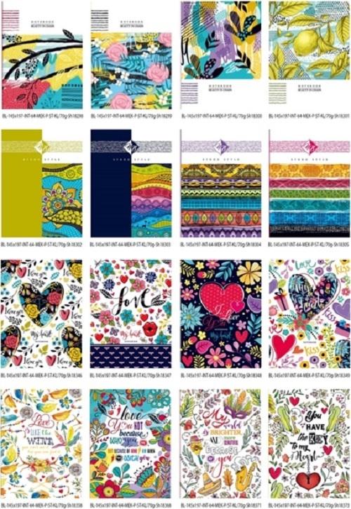 Notatnik ozdobny 145x197 64 stron kratka Usztywniana wytłaczany, mix wzorów, wzór wysyłany losowo.