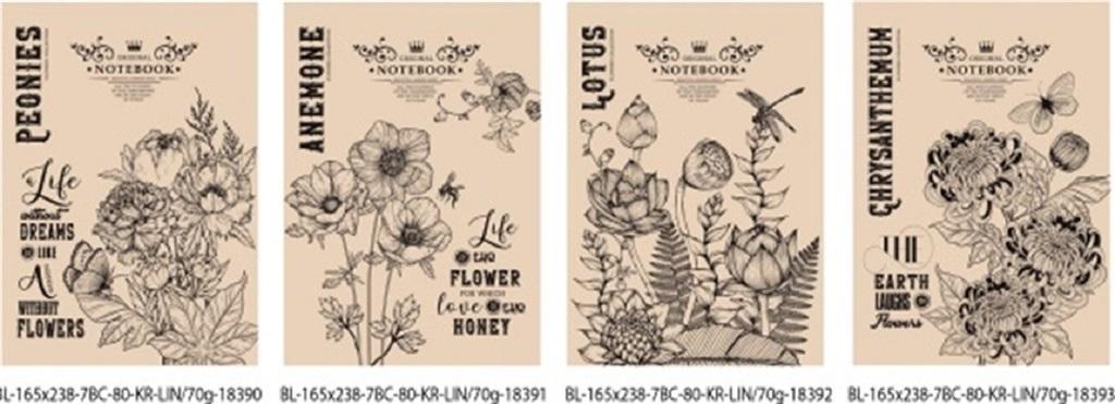 Notatnik ozdobny 165x238 80 stron linia TW karton, mix wzorów, wzór wysyłany losowo.