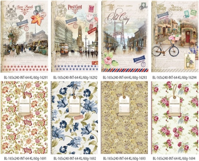 Notatnik ozdobny 165x240 64 stron kratka Usztywniana, mix wzorów, wzór wysyłany losowo.