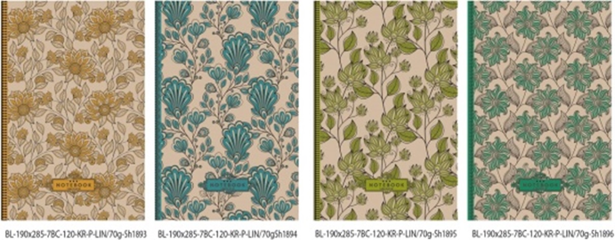 Notatnik ozdobny 190x285 120 stron linia TW karton, mix wzorów, wzór wysyłany losowo.