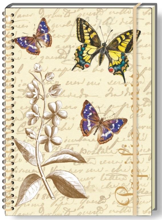 Notatnik z kremowymi kartkami w delikatną linie, na kole, zamykany na gumkę. Format A5, 64 kartki.