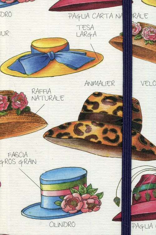 Notatnik w twardej oprawie z kremowymi kartkami w delikatną linie, zamykany na gumkę. Format A6, 96 kartek.